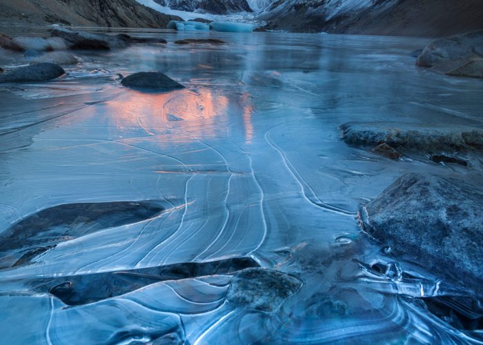 The first rays of the sun, dyeing the walls of the mountain reflected in this beautiful glacial lagoon red, are a unique and incomparable experience. Beautiful photographs await us.