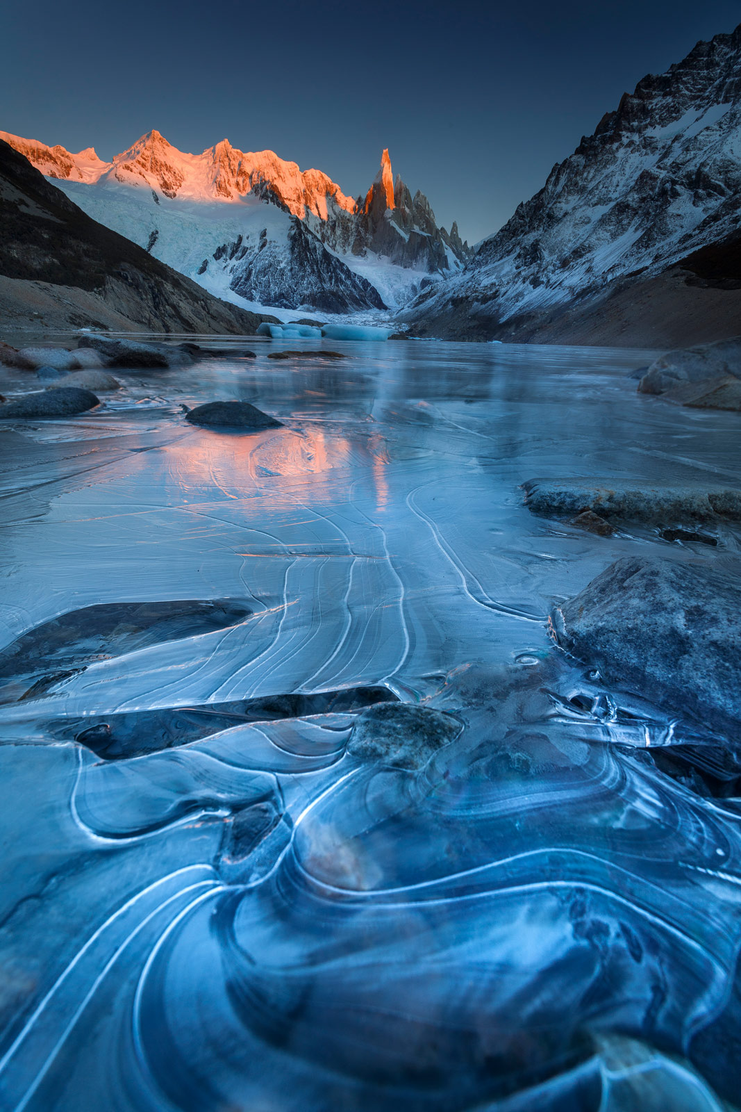 We will photograph the orange sunrise over the vertical granite walls of the imposing Cerro Torre from the shores of the Torre Lagoon or the Maestri Viewpoint and we will learn about the history of this mythical mountain, its first climbers and the controversy that surrounds its summit to this day.