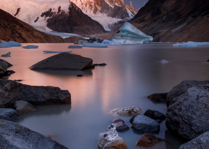 With the view of the legendary, unique and beautiful Cerro Torre we will do our sunset photography practice exploring the banks of the Fitz Roy River and the Torre Lagoon.